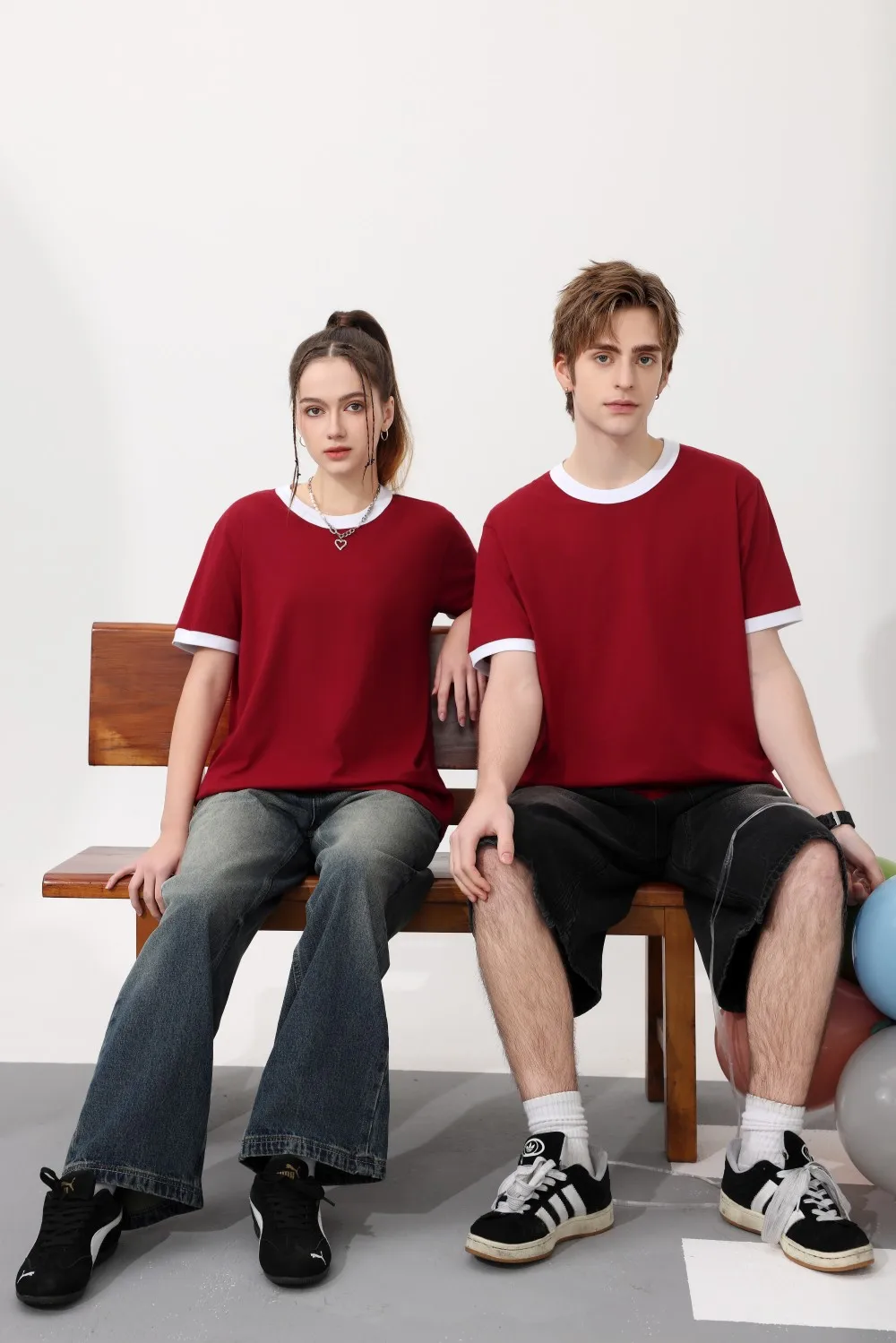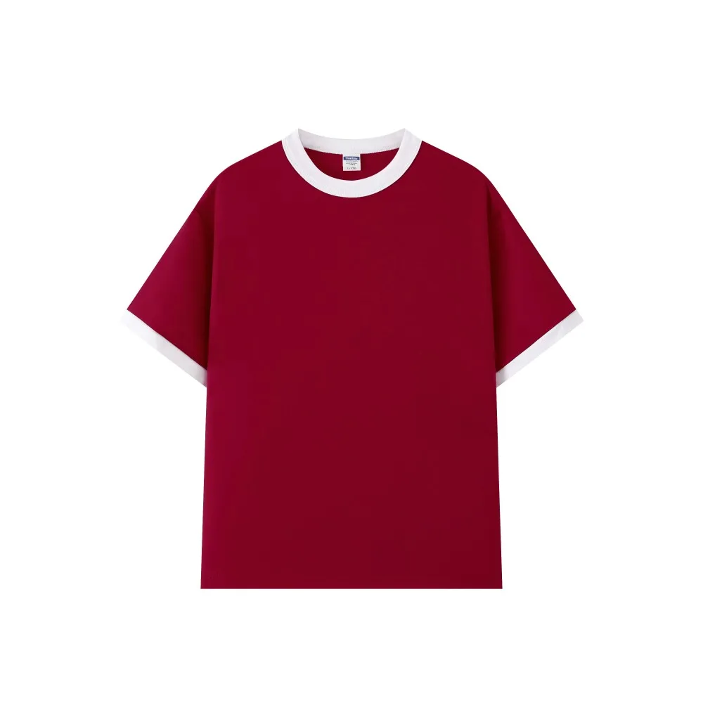 Breathable Ringer O-Neck Regular Men Solid Women Shirts Color 200gsm Fit Design Blocking Tee Cotton Trendy Unisex for