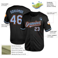 Custom Black Light Blue-Orange Mesh Authentic Throwback Baseball Jersey