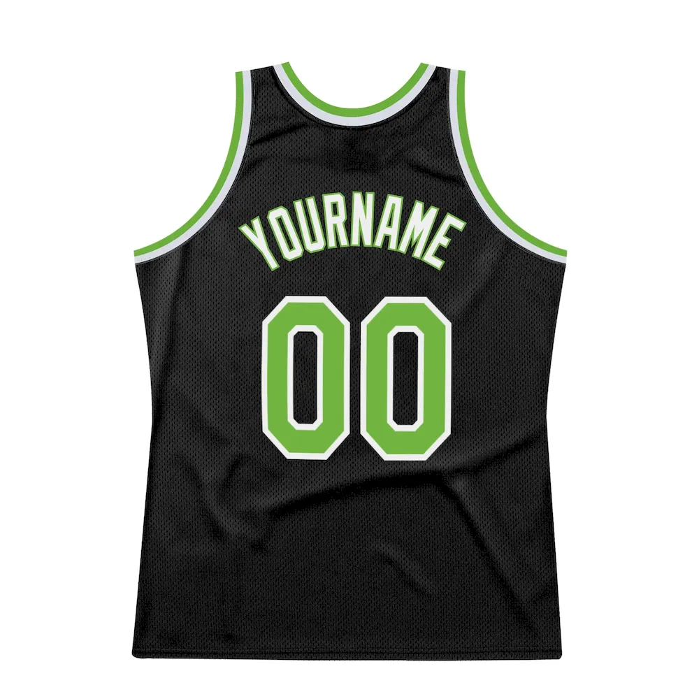 Custom Black Neon Green-White Authentic Throwback Basketball Jersey