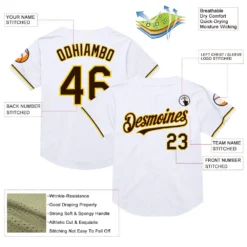 Custom White Brown-Yellow Mesh Authentic Throwback Baseball Jersey