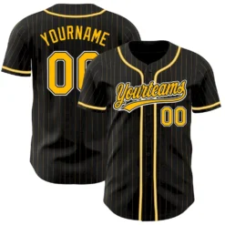 Custom Black Gold Pinstripe Gold-White Authentic Baseball Jersey