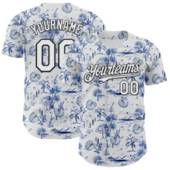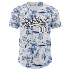Custom White Black 3D Hawaii Island Tropical Palm Tree Authentic Baseball Jersey