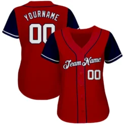 Custom Red White-Navy Authentic Two Tone Baseball Jersey
