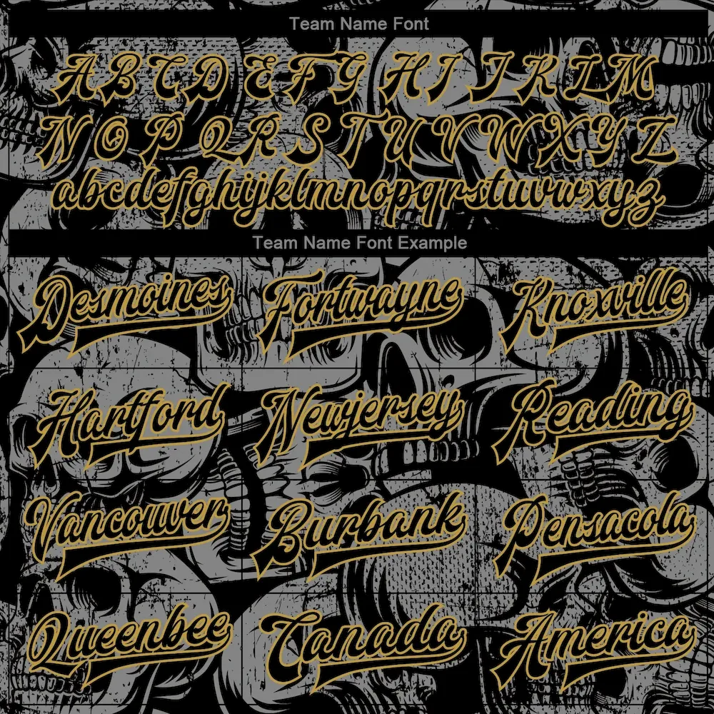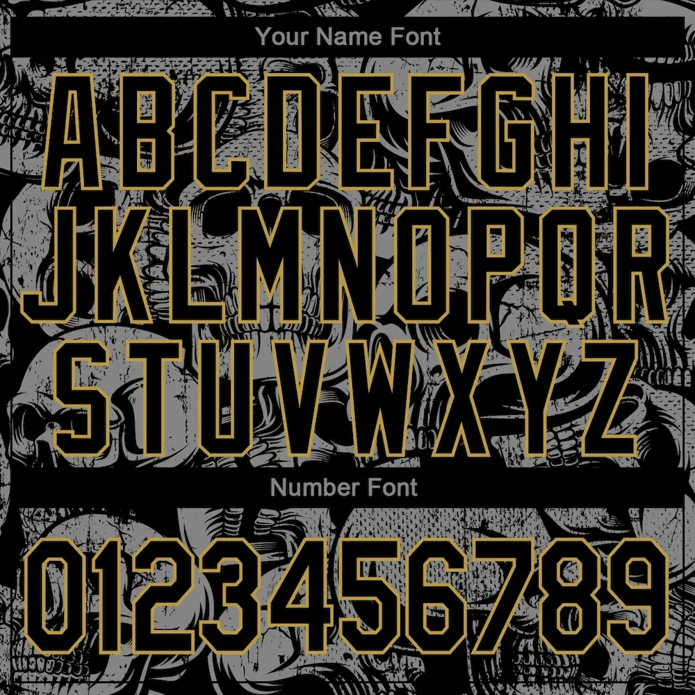 Custom Black Old Gold Skull Fashion 3D Bomber Full-Snap Varsity Letterman Jacket
