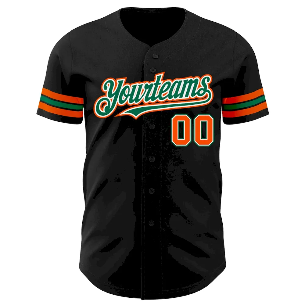 Custom Black Orange-Kelly Green Authentic Baseball Jersey