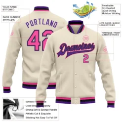 Custom Cream Pink Black-Purple Bomber Full-Snap Varsity Letterman Jacket