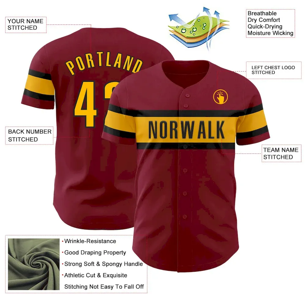 Custom Crimson Gold-Black Authentic Baseball Jersey