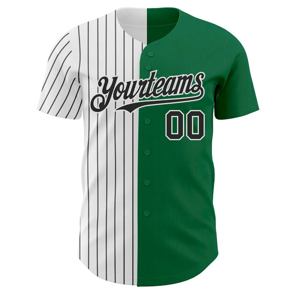 Custom Kelly Green White-Black Pinstripe Authentic Split Fashion Baseball Jersey