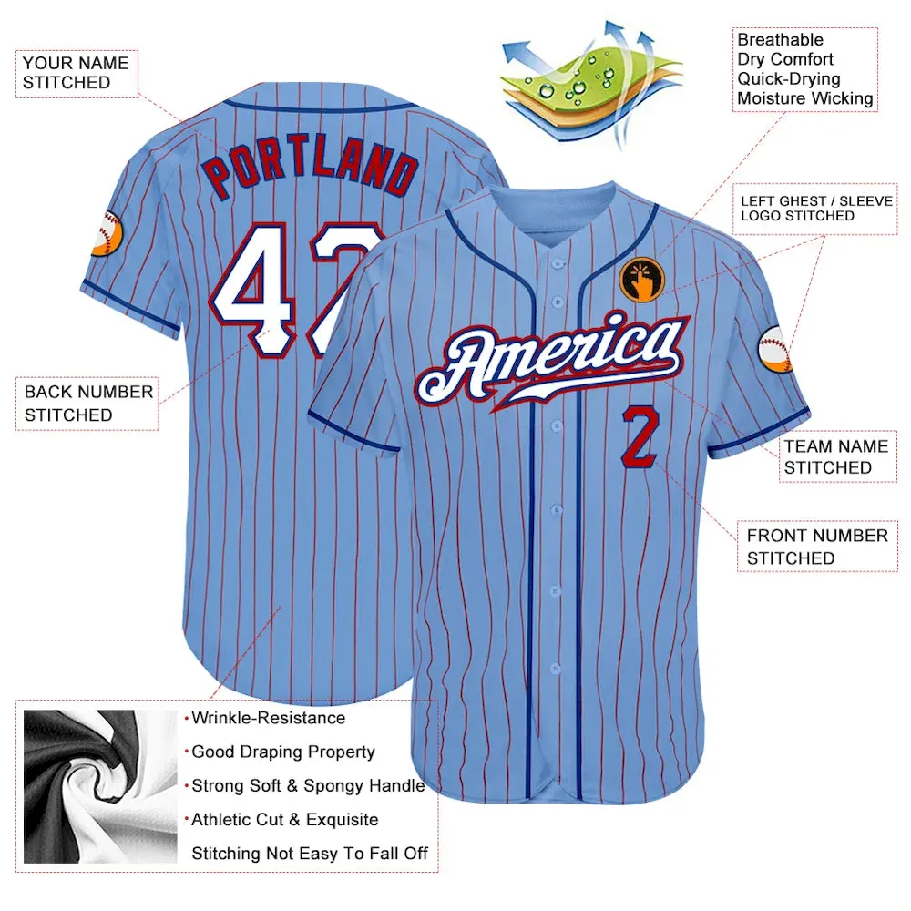 Custom Light Blue Red Pinstripe White-Royal Authentic Baseball Jersey