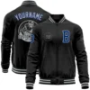 Custom Black Royal-Gray Bomber Varsity Letterman Zipper Jacket