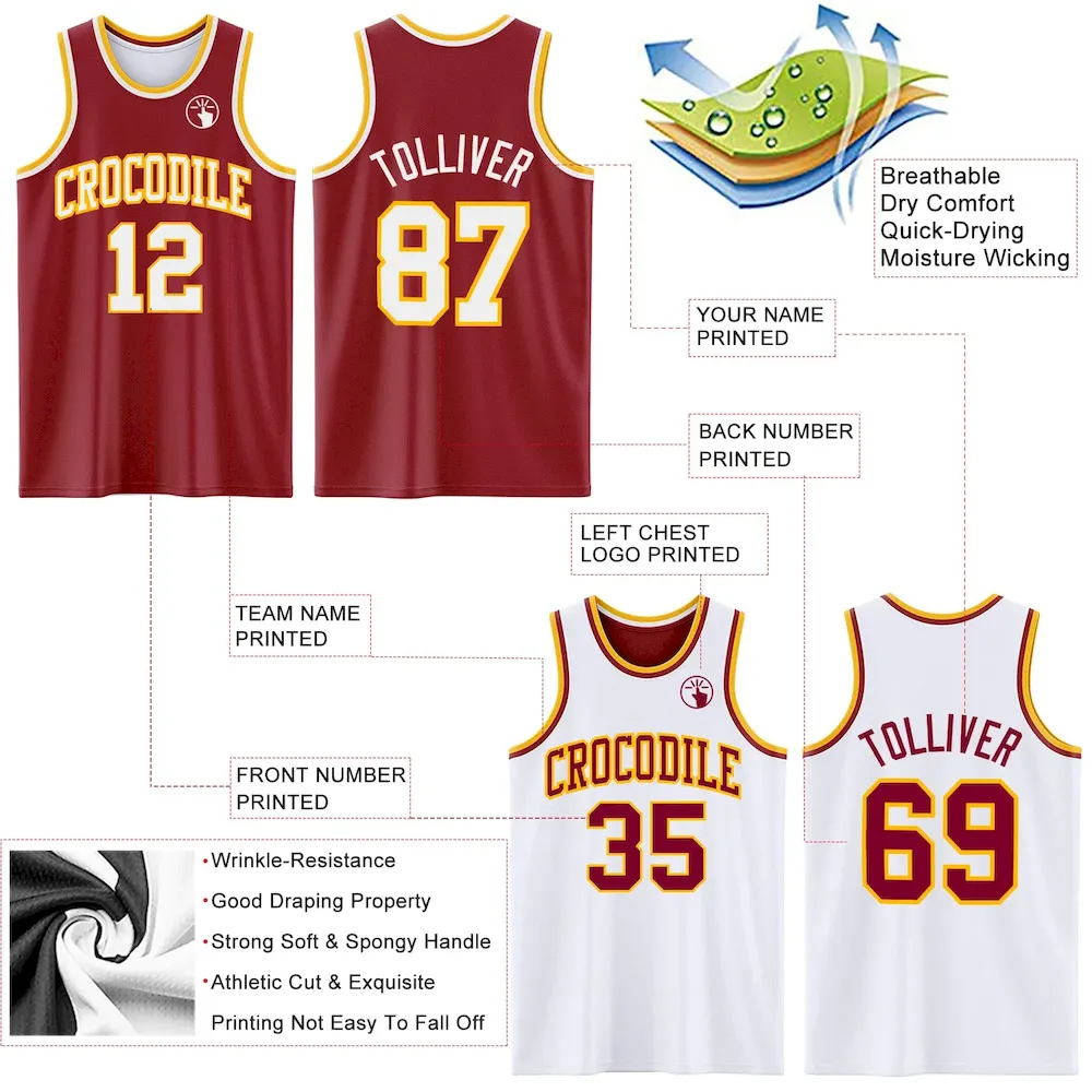 Custom Reversible Maroon White-Gold Double Side Basketball Jersey