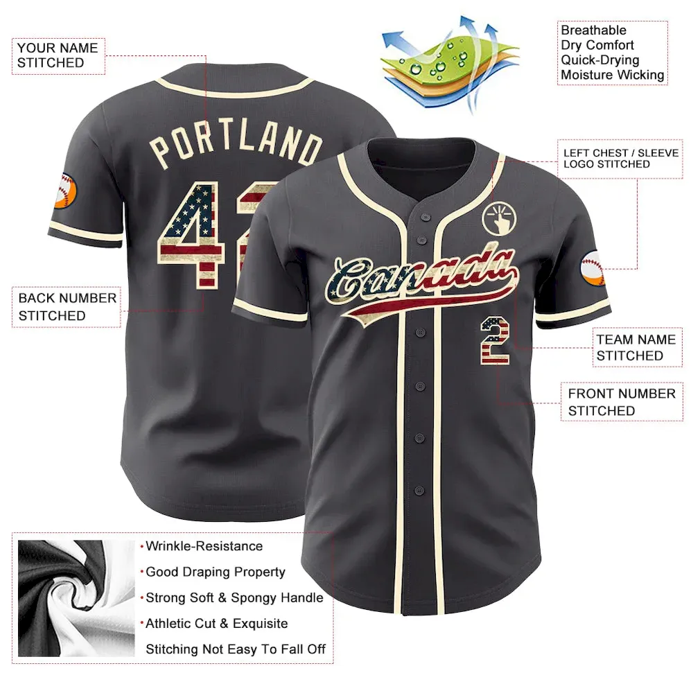 Custom Steel Gray Vintage USA Flag-Cream Authentic Baseball Jersey