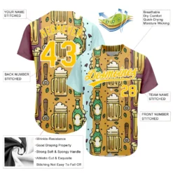 Custom Yellow White 3D Pattern Design Beer Festival Authentic Baseball Jersey